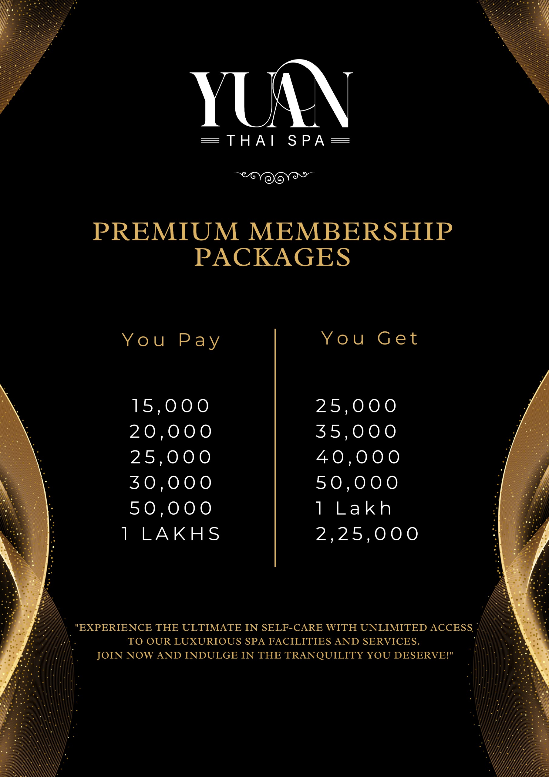 Experience the ultimate relaxation and rejuvenation with our exclusive membership plans. At Yuan Thai Spa, we believe in providing a serene escape from the everyday hustle and bustle. Our membership plans are designed to offer you the best value and ensure you have a consistent wellness routine tailored to your needs.